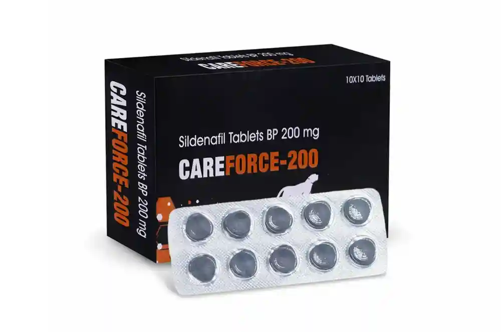 Careforce 200 mg: Men who suffer from erectile dysfunction (ED) need not worry because there are effective treatments available. As per your doctor’s advice, you should buy Careforce 200 mg. Its active ingredient is sildenafil citrate, which increases blood flow to the penis by inhibiting the PDE5 enzyme, helping to get and maintain an erection when sexually aroused.