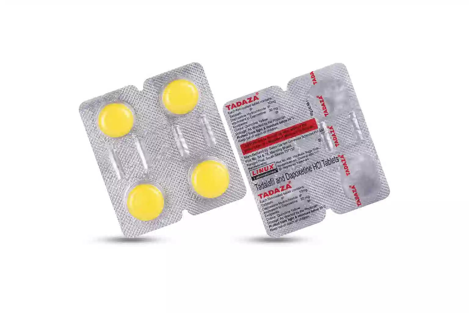 Tadaza consists of 2 active ingredients: Dapoxetine (30 mg), Tadalafil (10 mg)